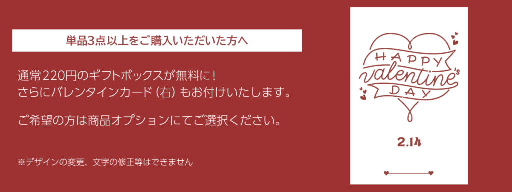 無料でギフトボックス包装とバレンタインカードをおつけいたします。